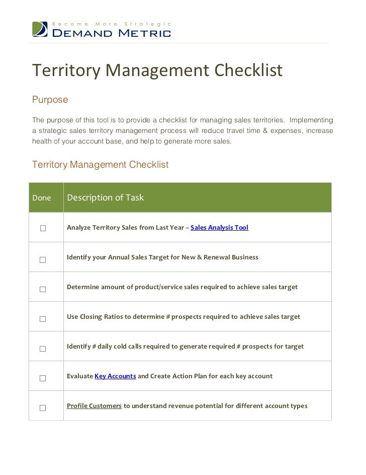Best Practice: Territory Business Management High performing sales teams manage territories like businesses to build strong sales pipelines, advance their sales opportunities and typical sales territory, the core elements of the territory business plan should include: ... Read Content